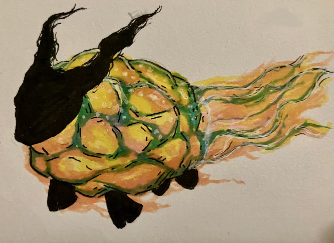 Amore swam closer, making note of the colors on the sky-sheep’s flank. Did this little- well, big guy have feet? He had to be sure.